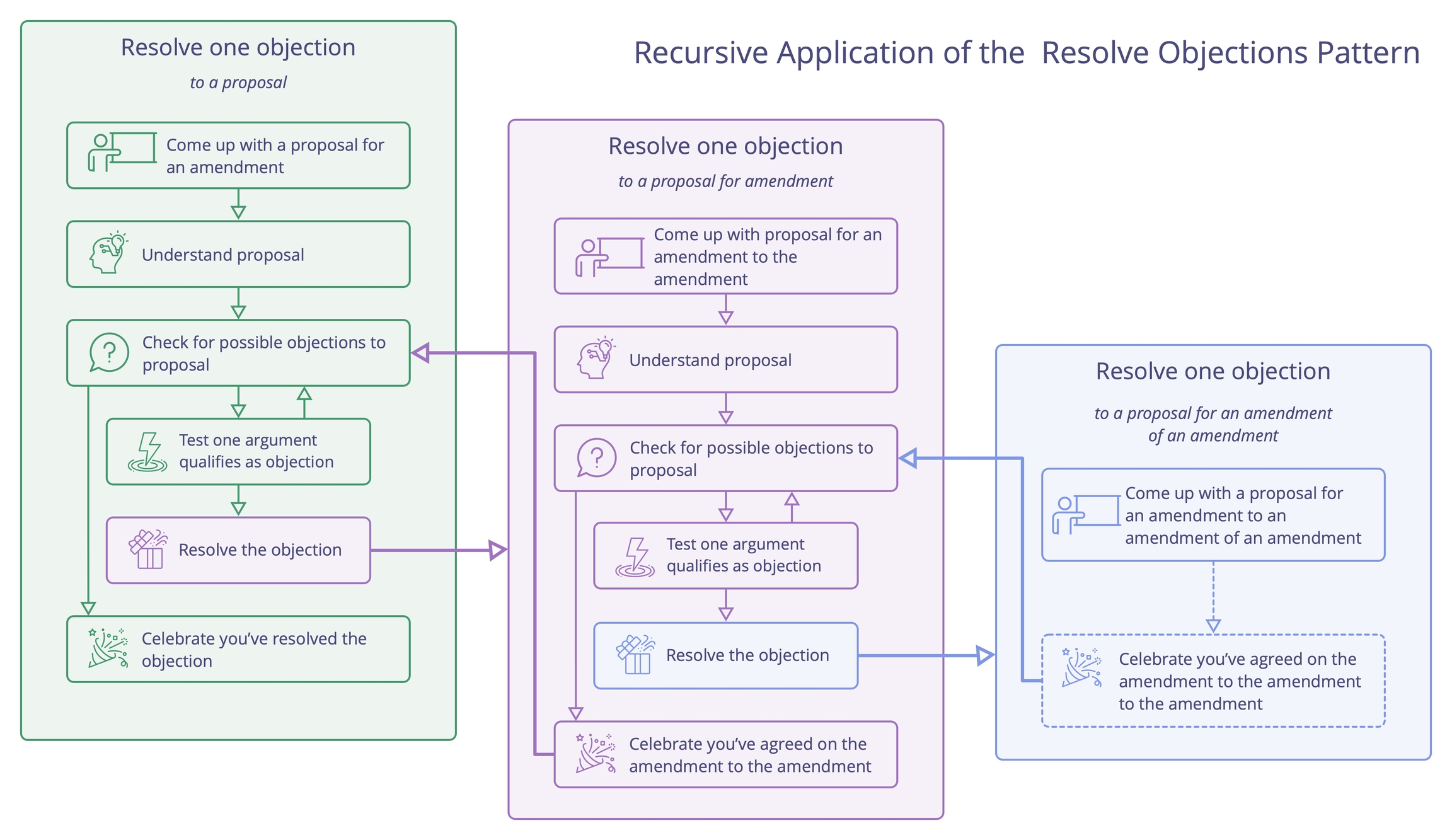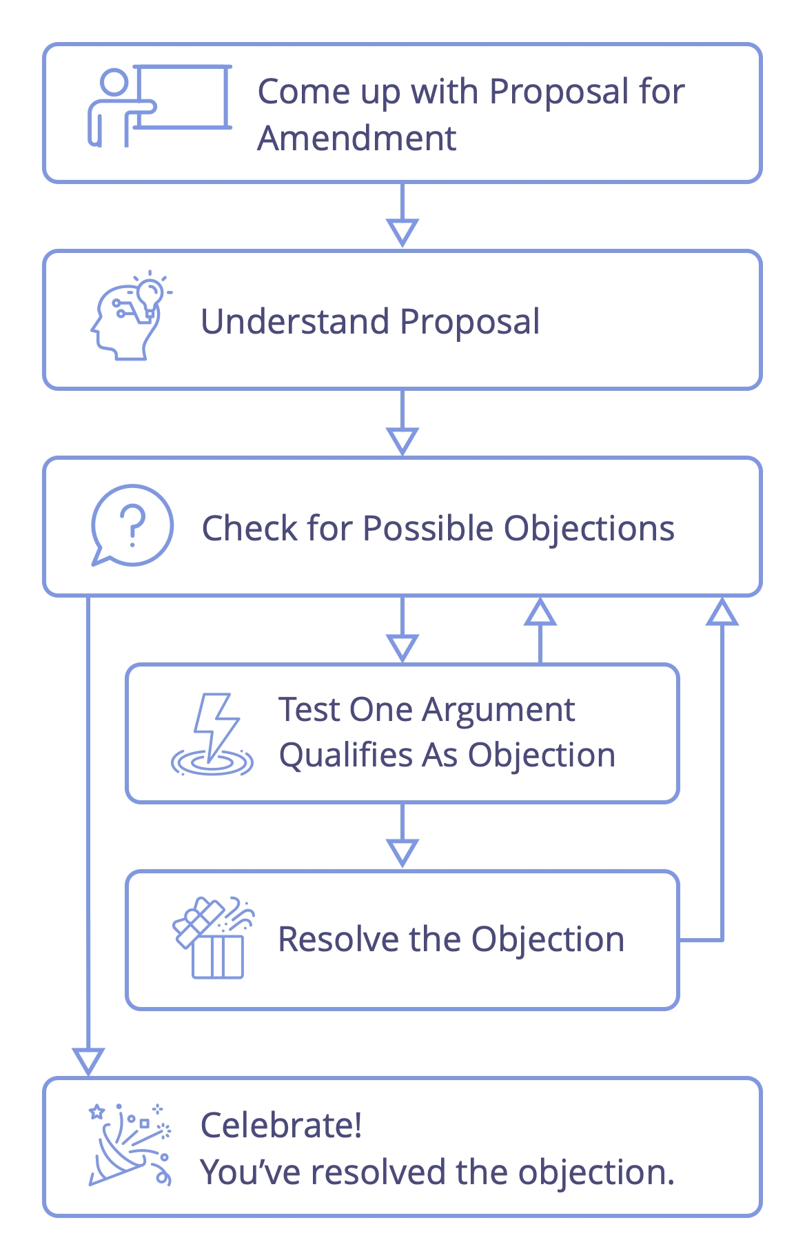 Choose an option for resolving an objection that looks most promising and, if that fails, simply pick another one. Each attempt will help you understand more of the information the objection contains, and bring the group closer to proposing an amendment that resolves the objection.